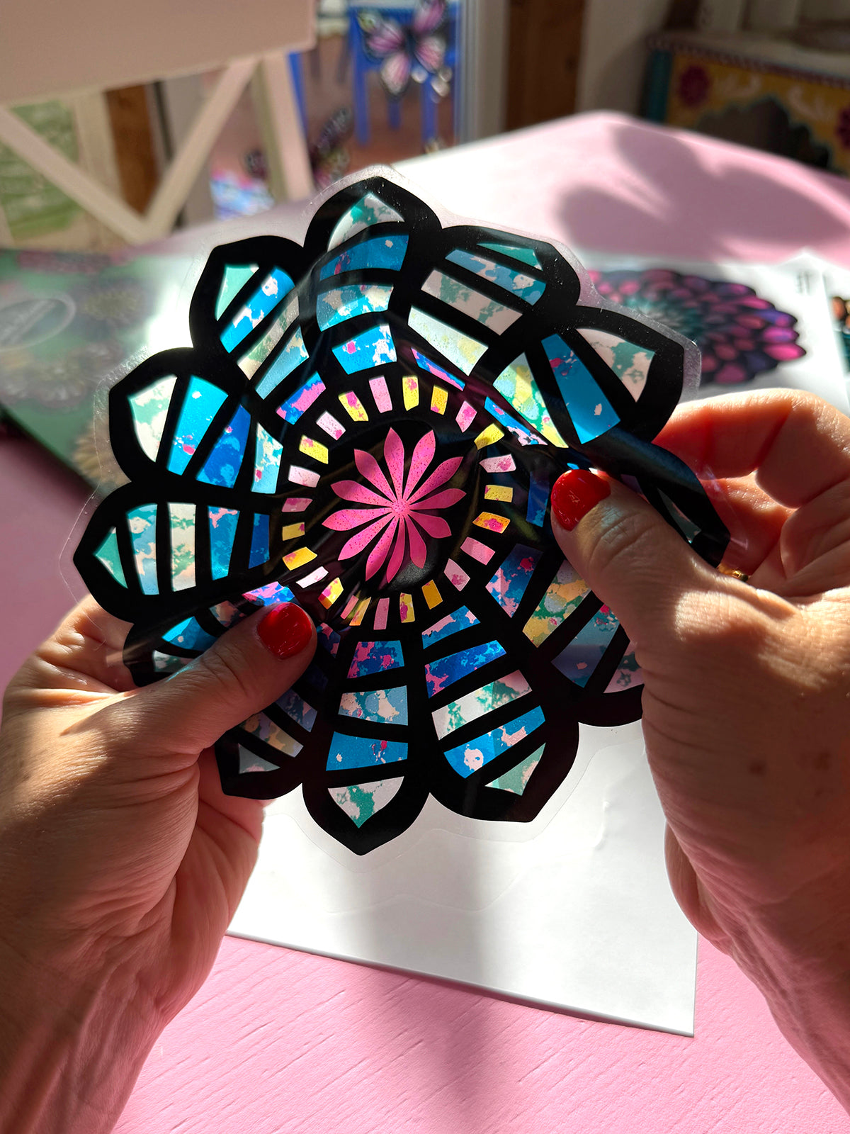 2. Die vorgestanzten Motive vorsichtig vom Trägerpapier lösen.