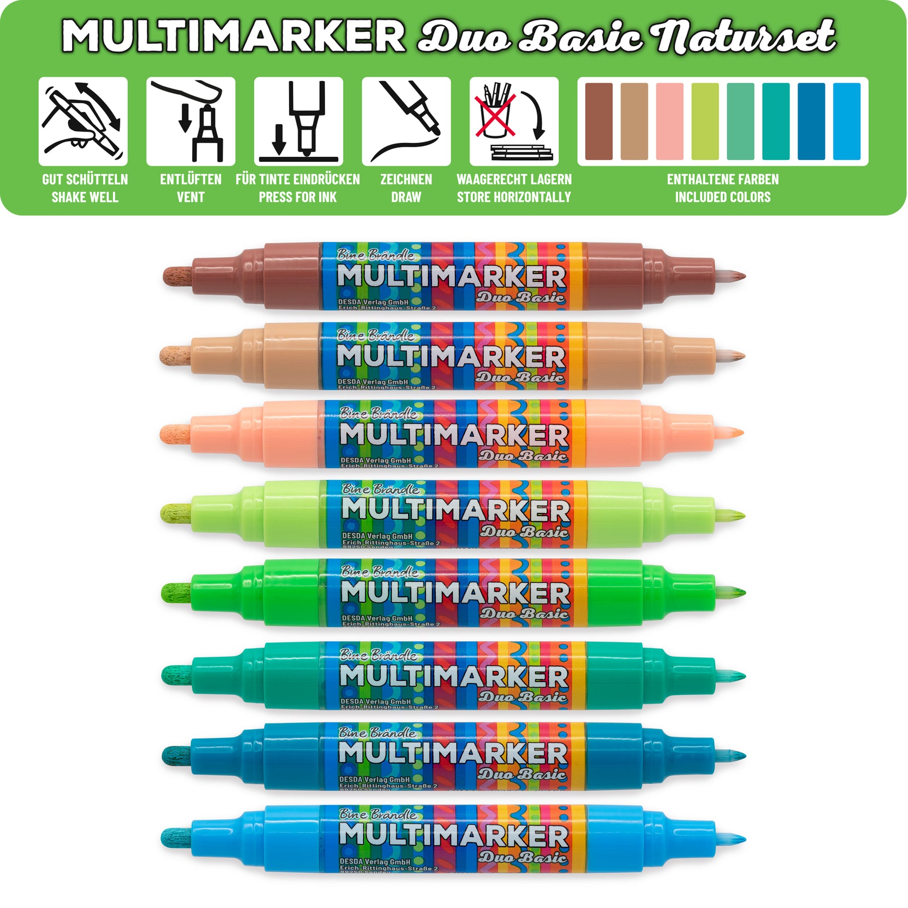 Bine Brändle MULTIMARKER – Duo Basic Naturset (8 Stifte, 8 Farben 16 Spitzen)