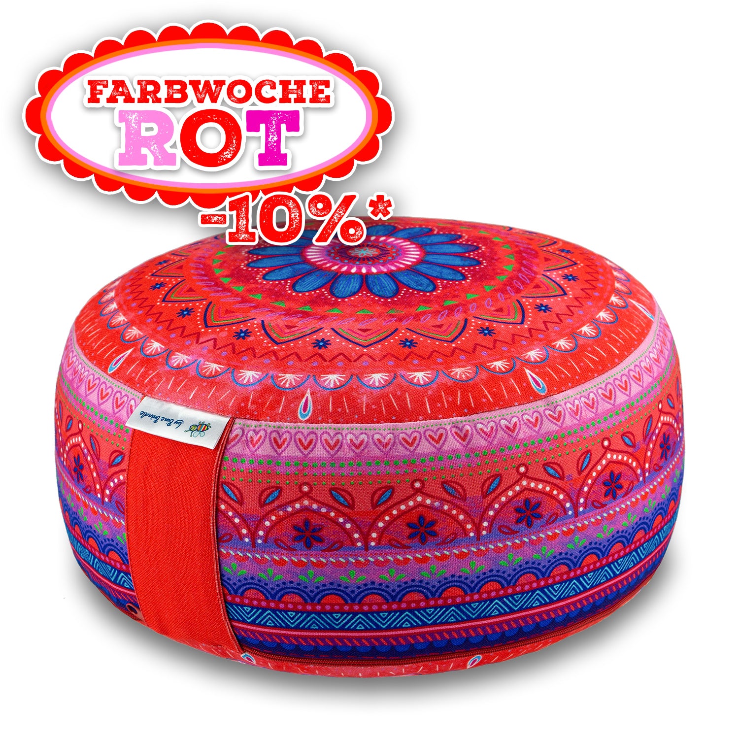 Das einmalige Mandalamotiv mit 15 cm hohen Bordürenrand ist die wunderschöne Grundlage für wertvolle Achtsamkeitsübungen. Vielseitig als Yoga- und Meditationskissen oder als dekoratives Bodensitzkissen verwendbar.