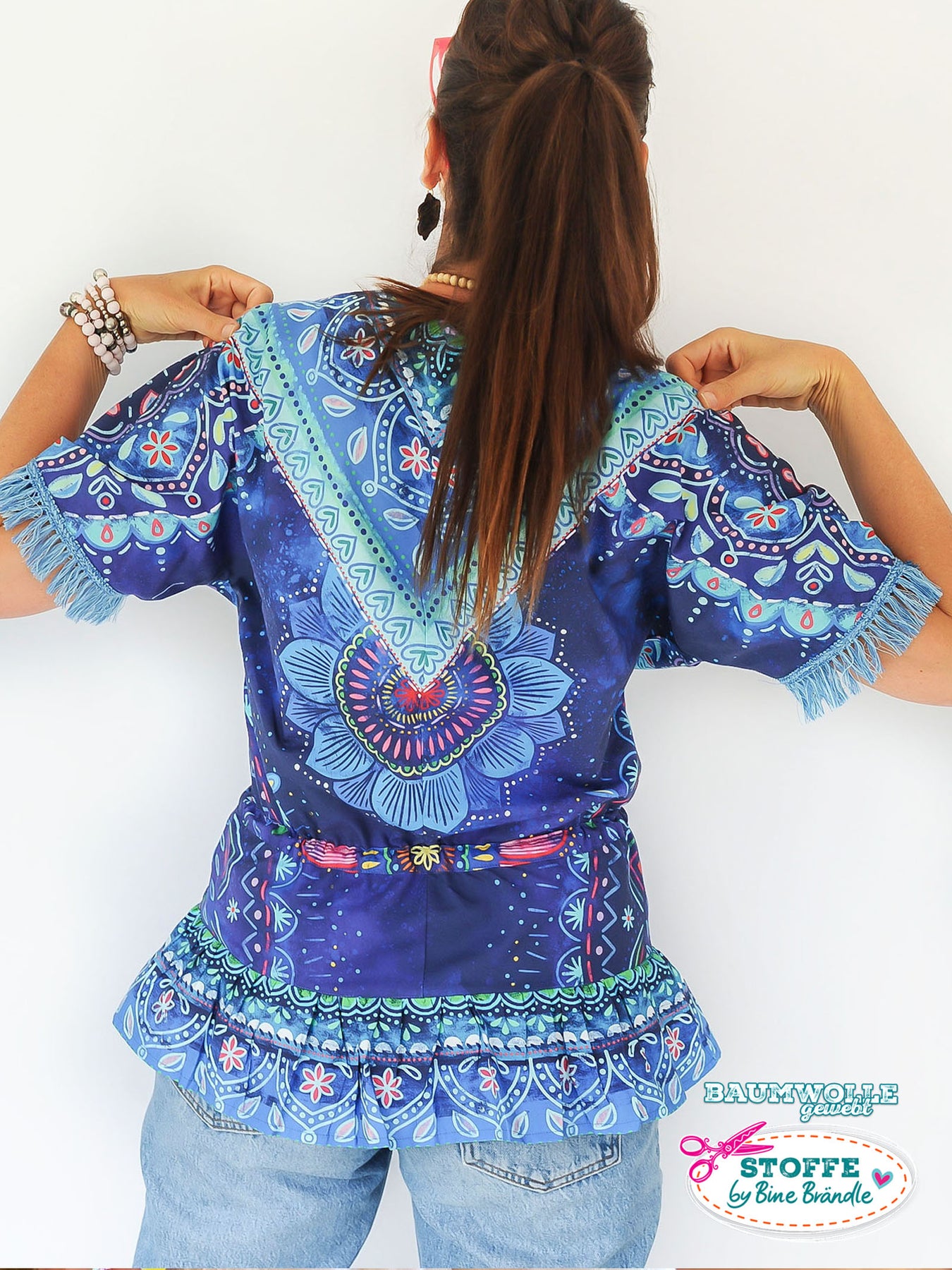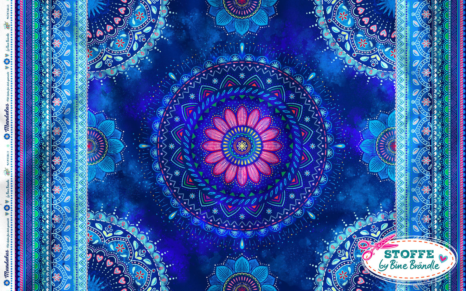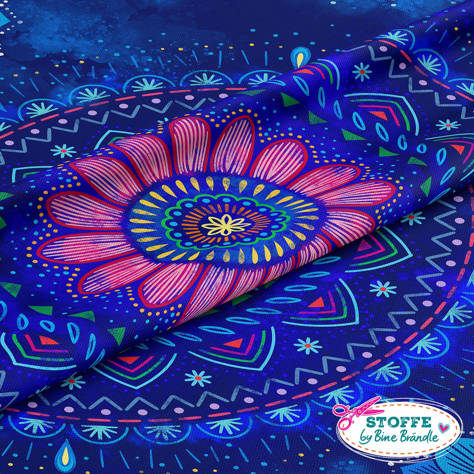 Farbenfroher Stoff mit dem Motiv "Mandalas dunkelblau".