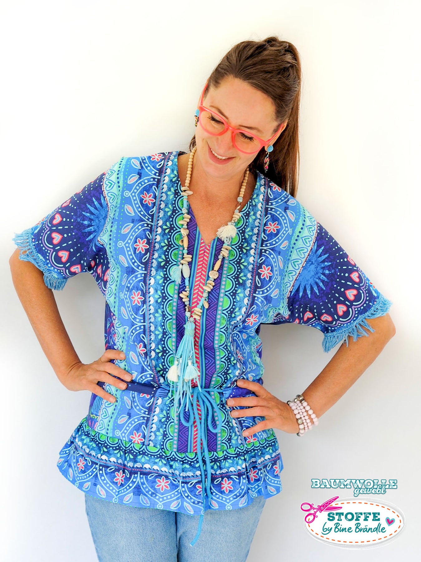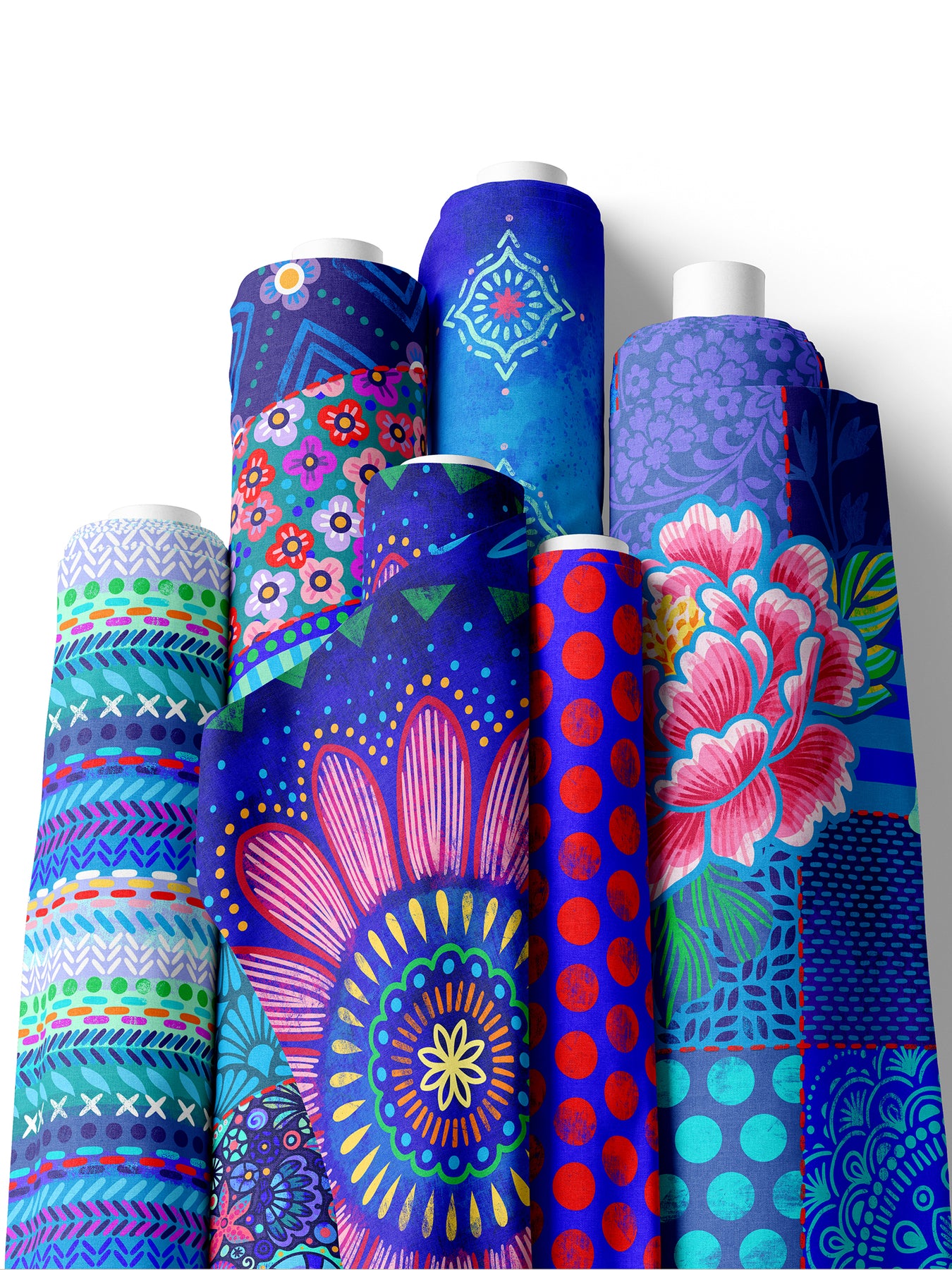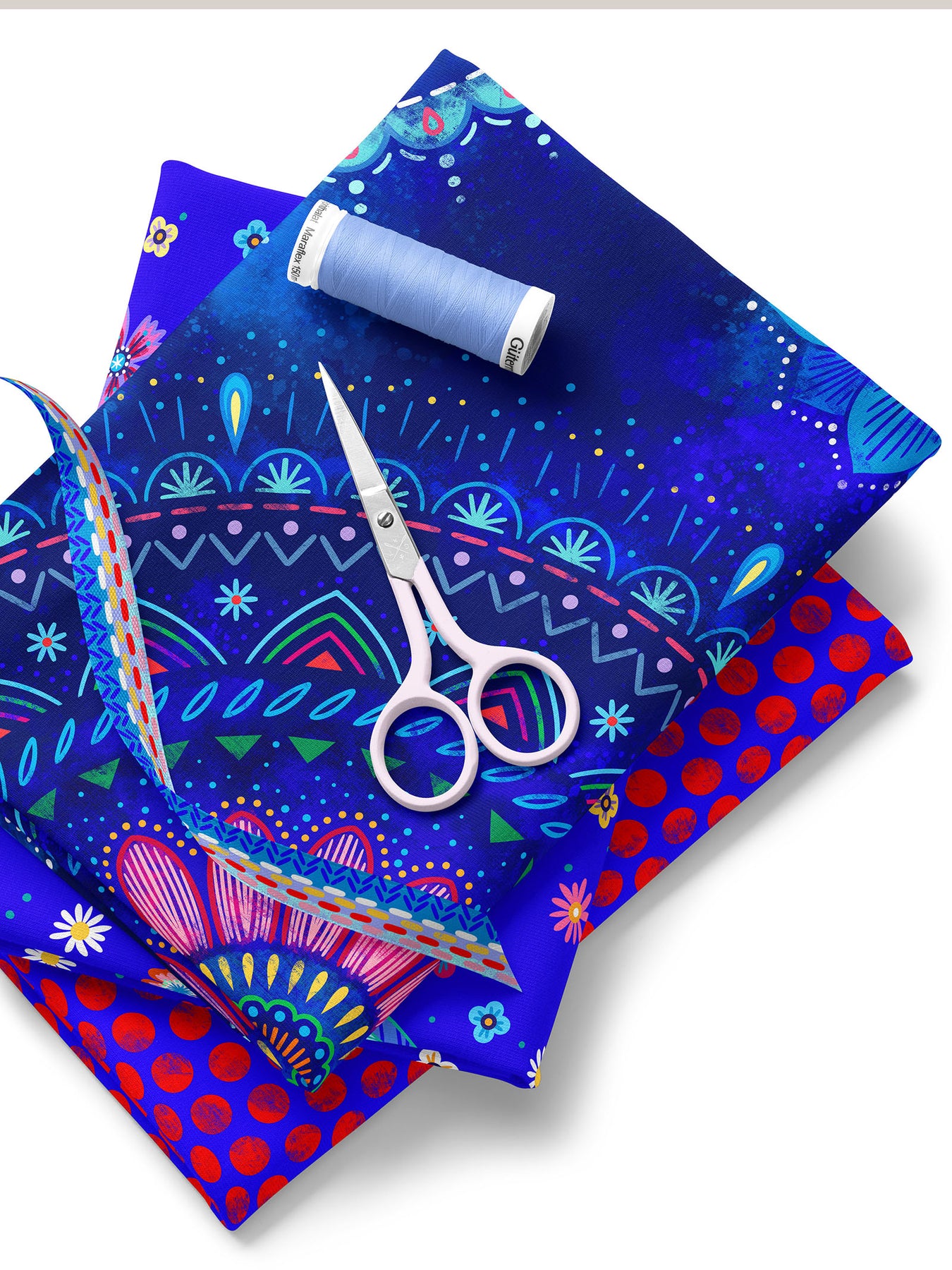 Farbenfroher Stoff mit dem Motiv "Mandalas dunkelblau".