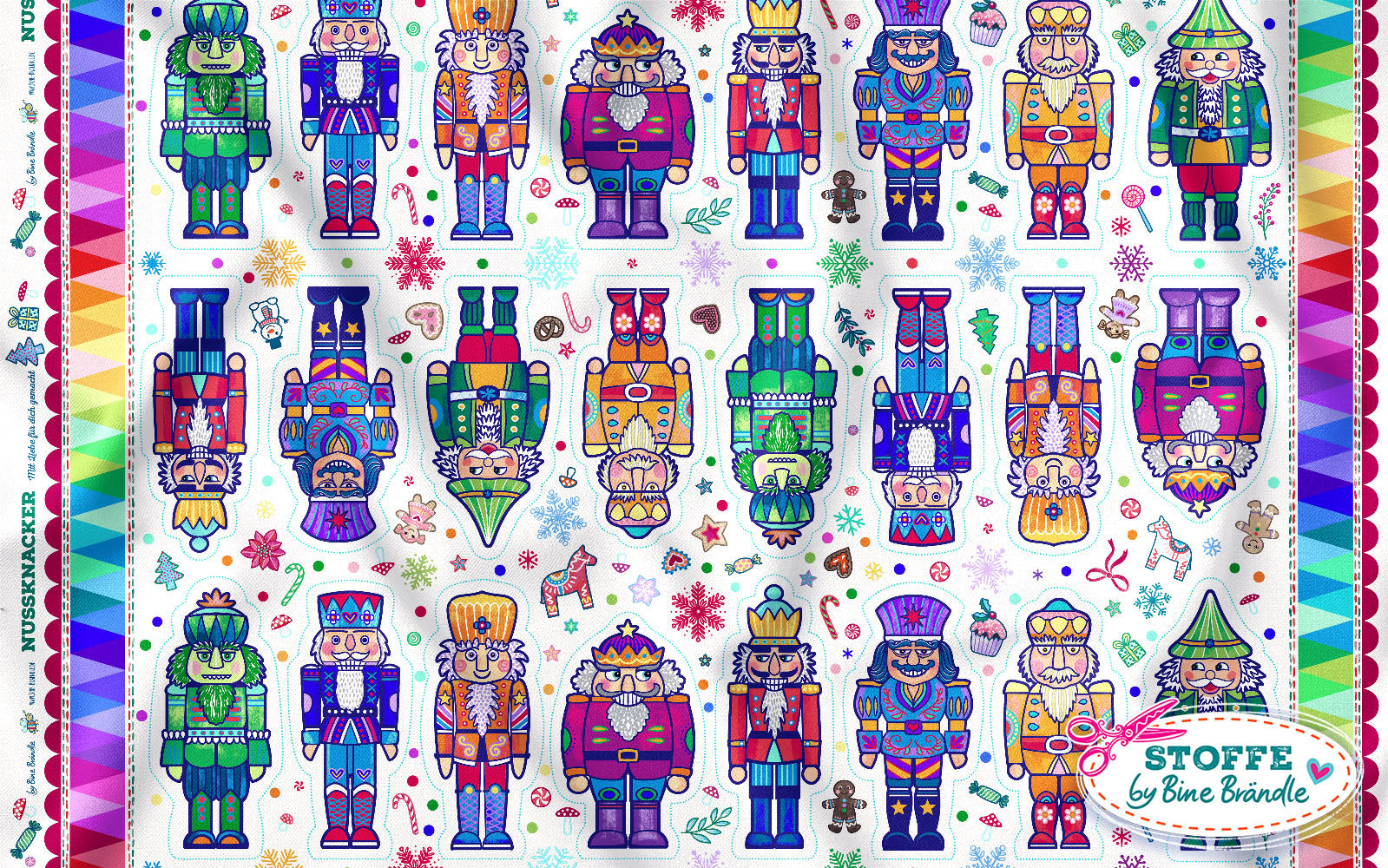 Farbenfroher Stoff mit dem Motiv "Nussknackerstoff groß".