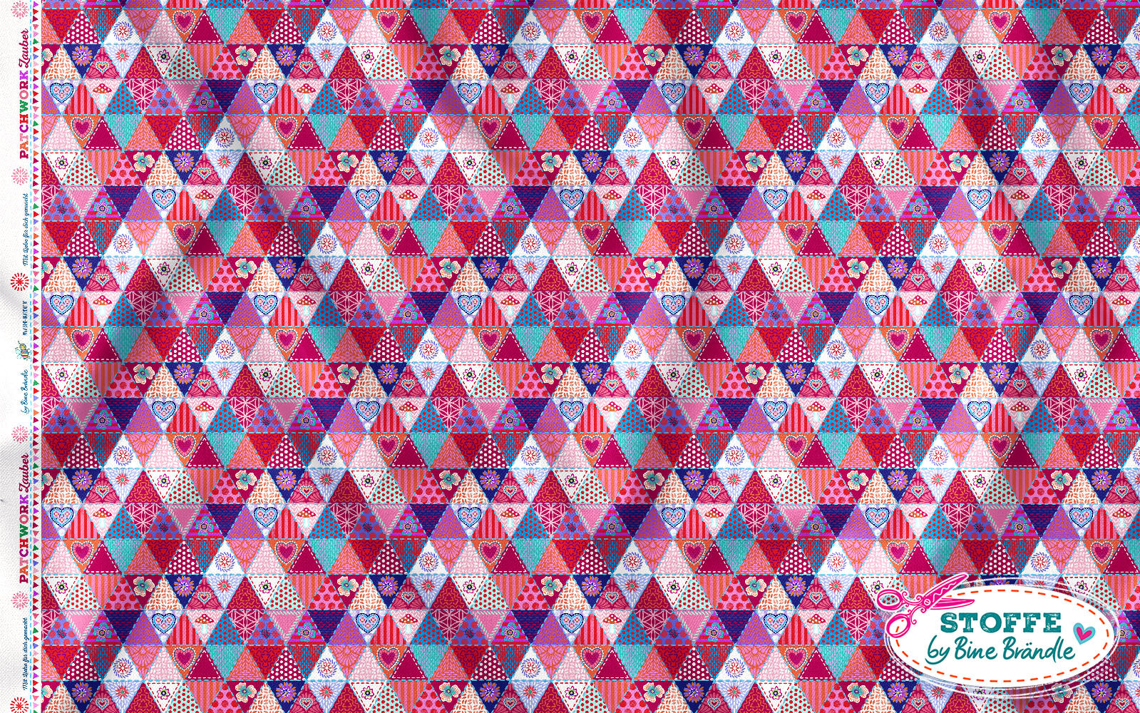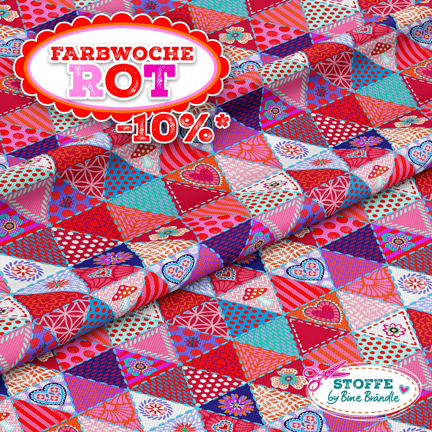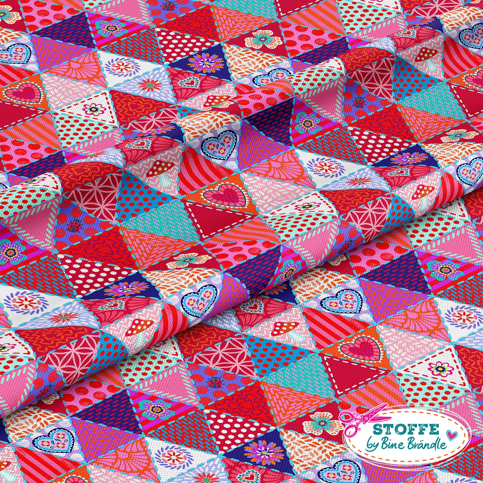 Farbenfroher Stoff mit dem Motiv "Dreiecke rot".
