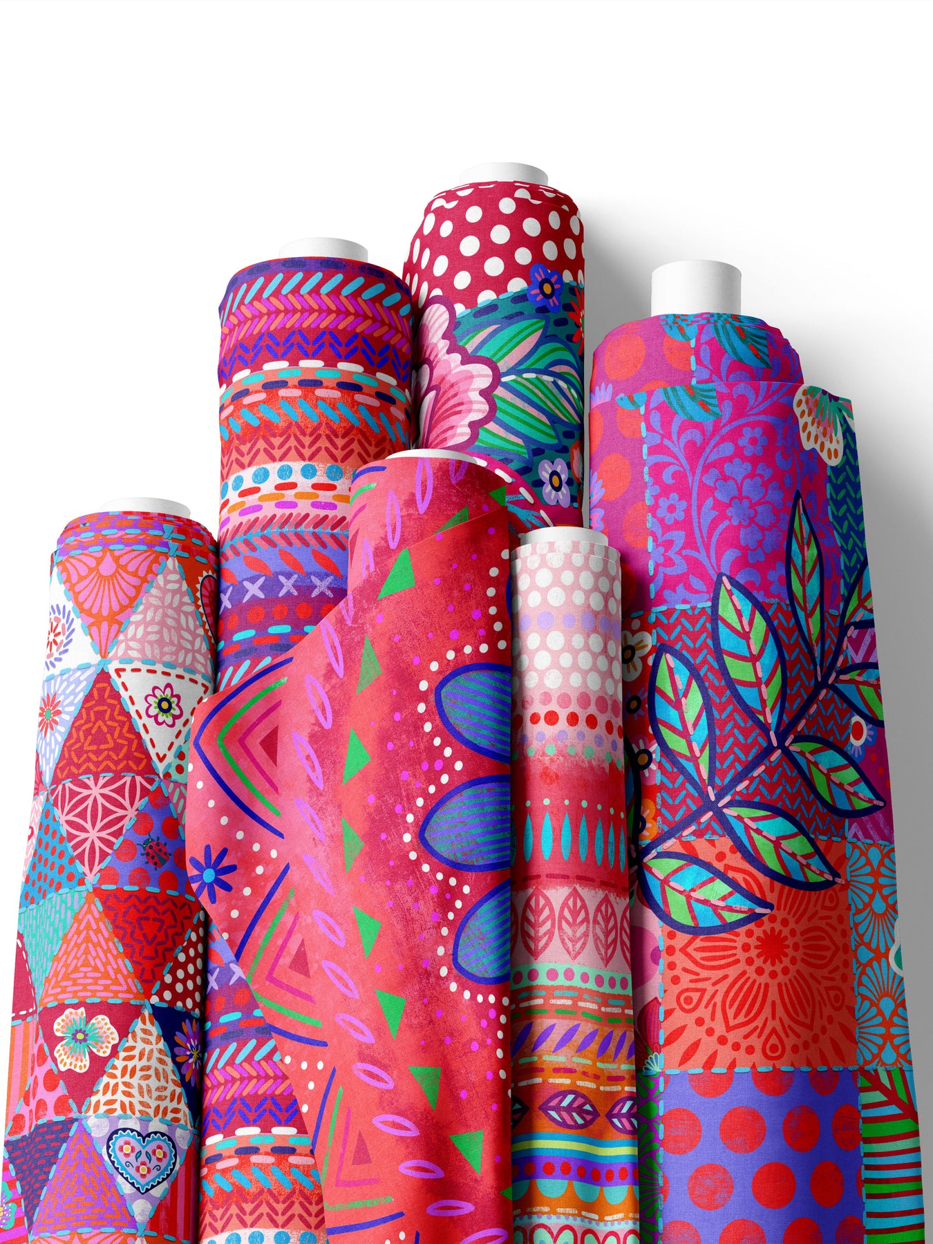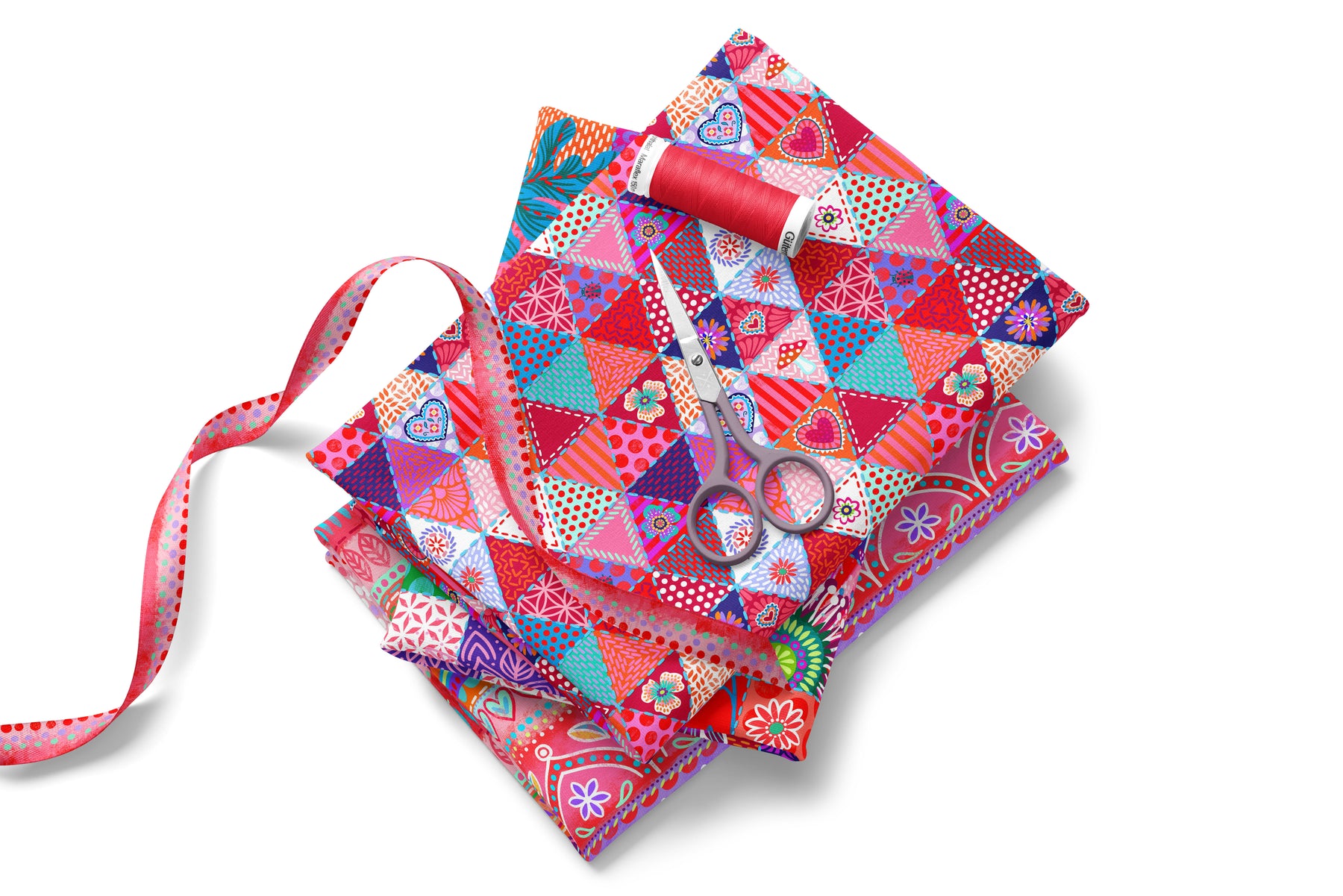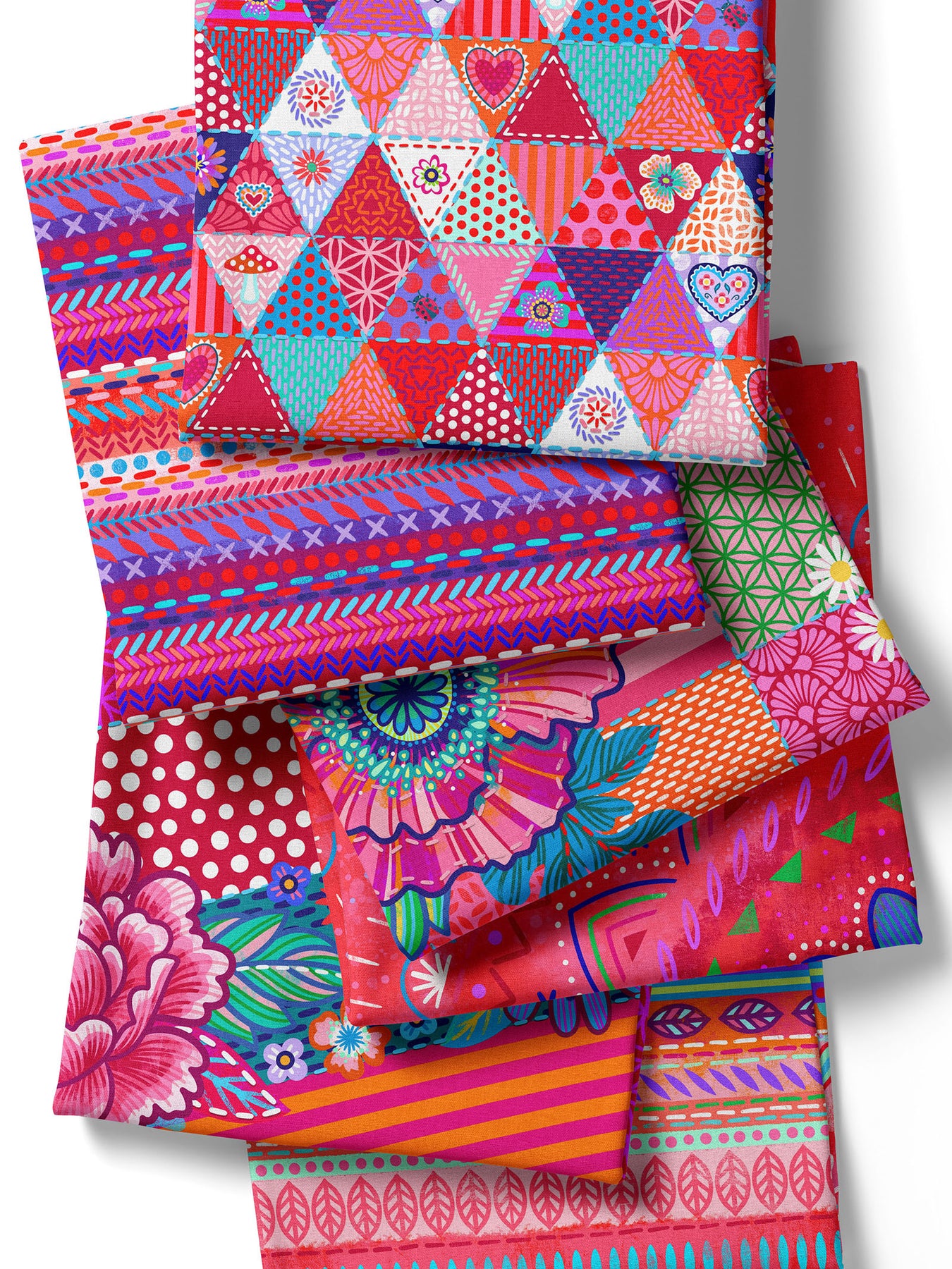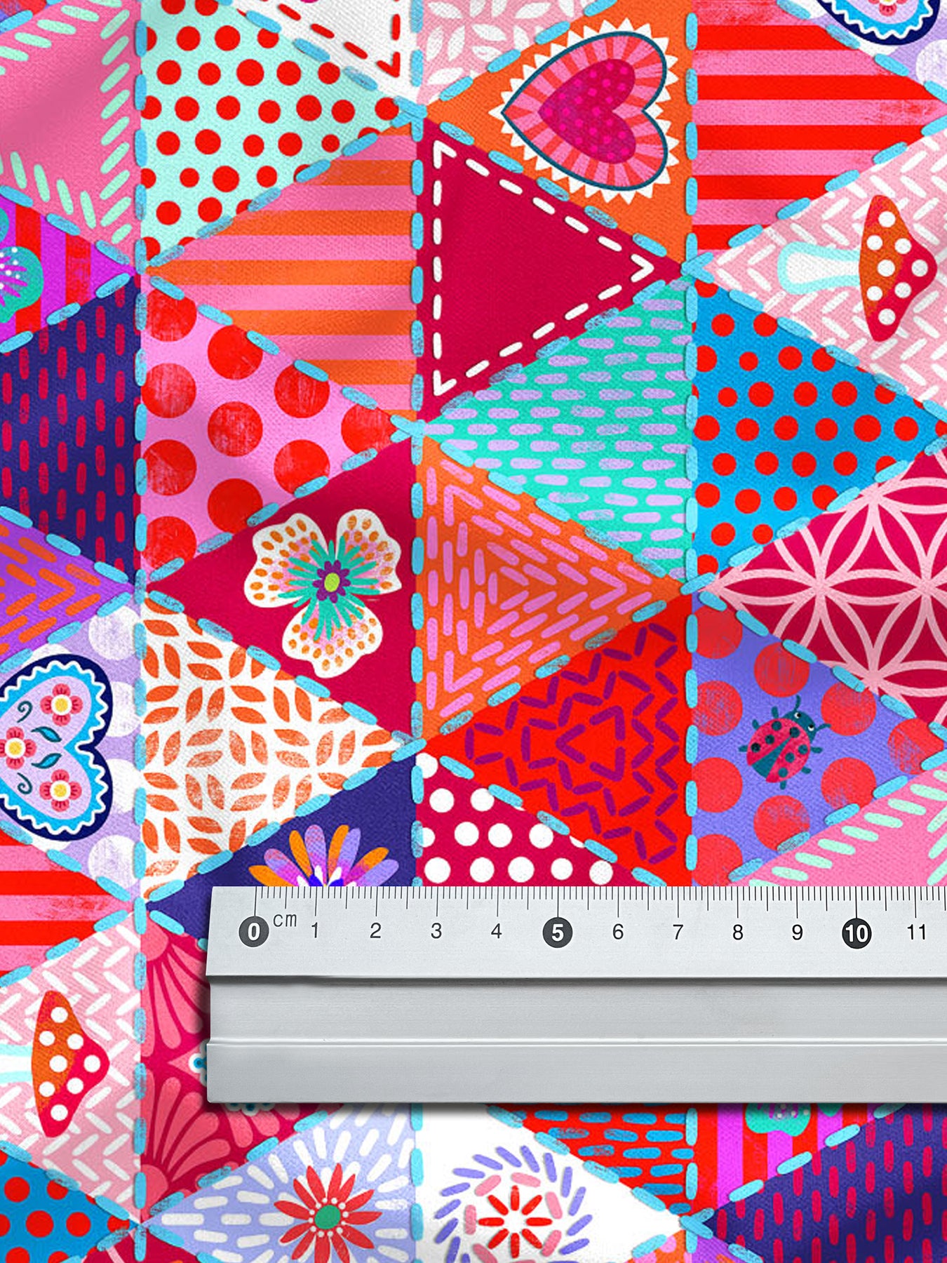 Farbenfroher Stoff mit dem Motiv "Dreiecke rot".