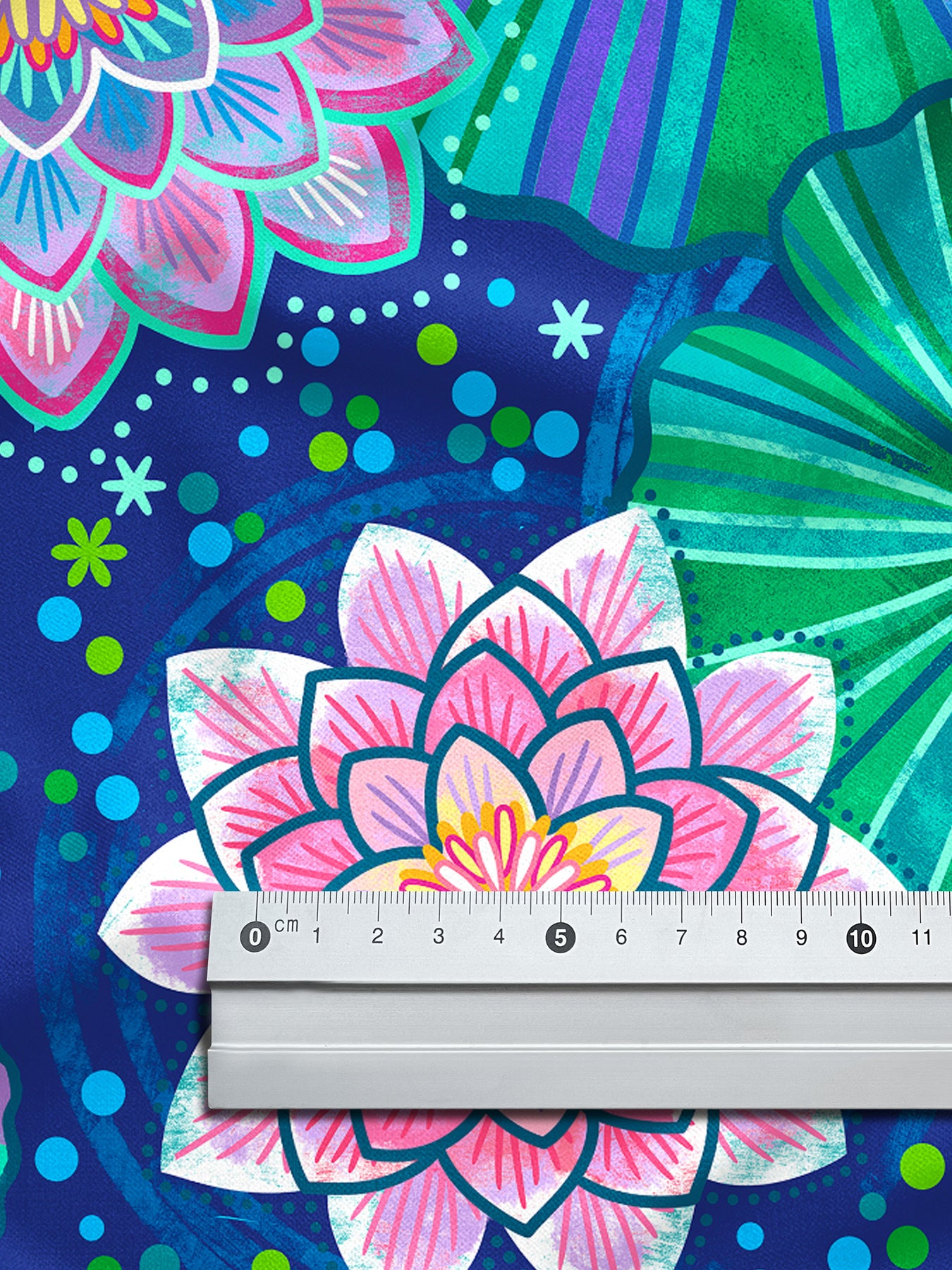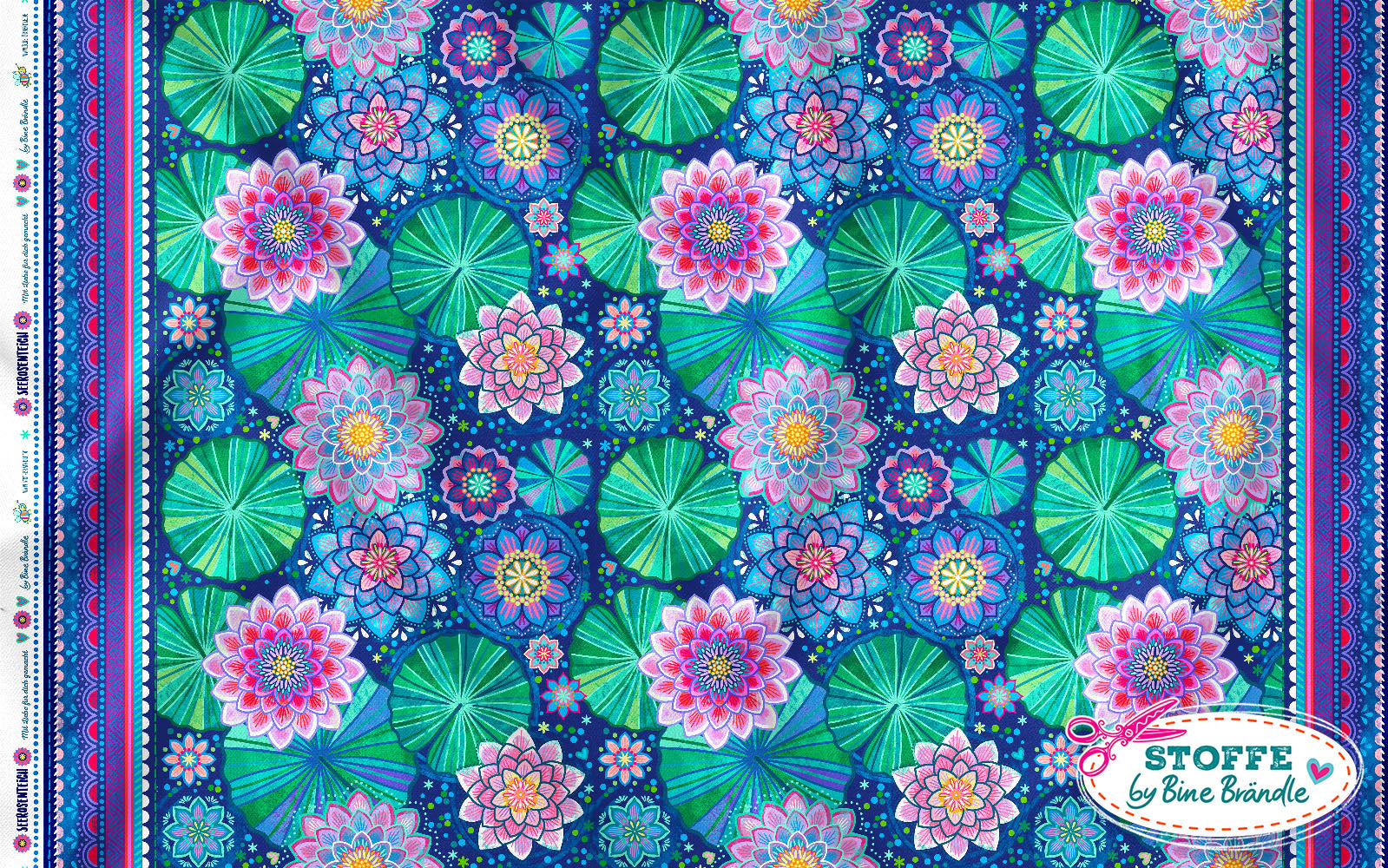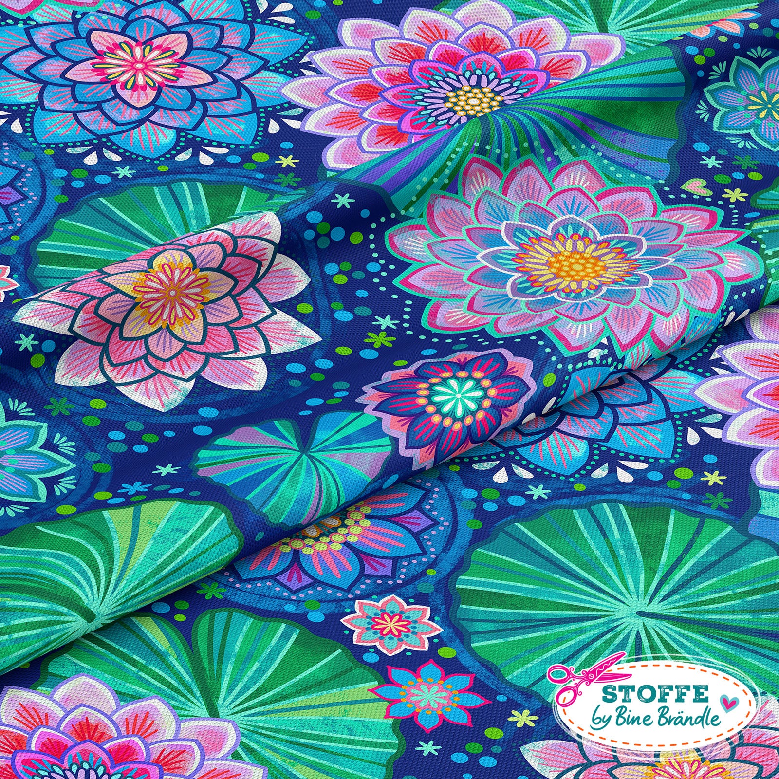 Farbenfroher Stoff mit dem Motiv "Seerosenstoff dunkelblau".