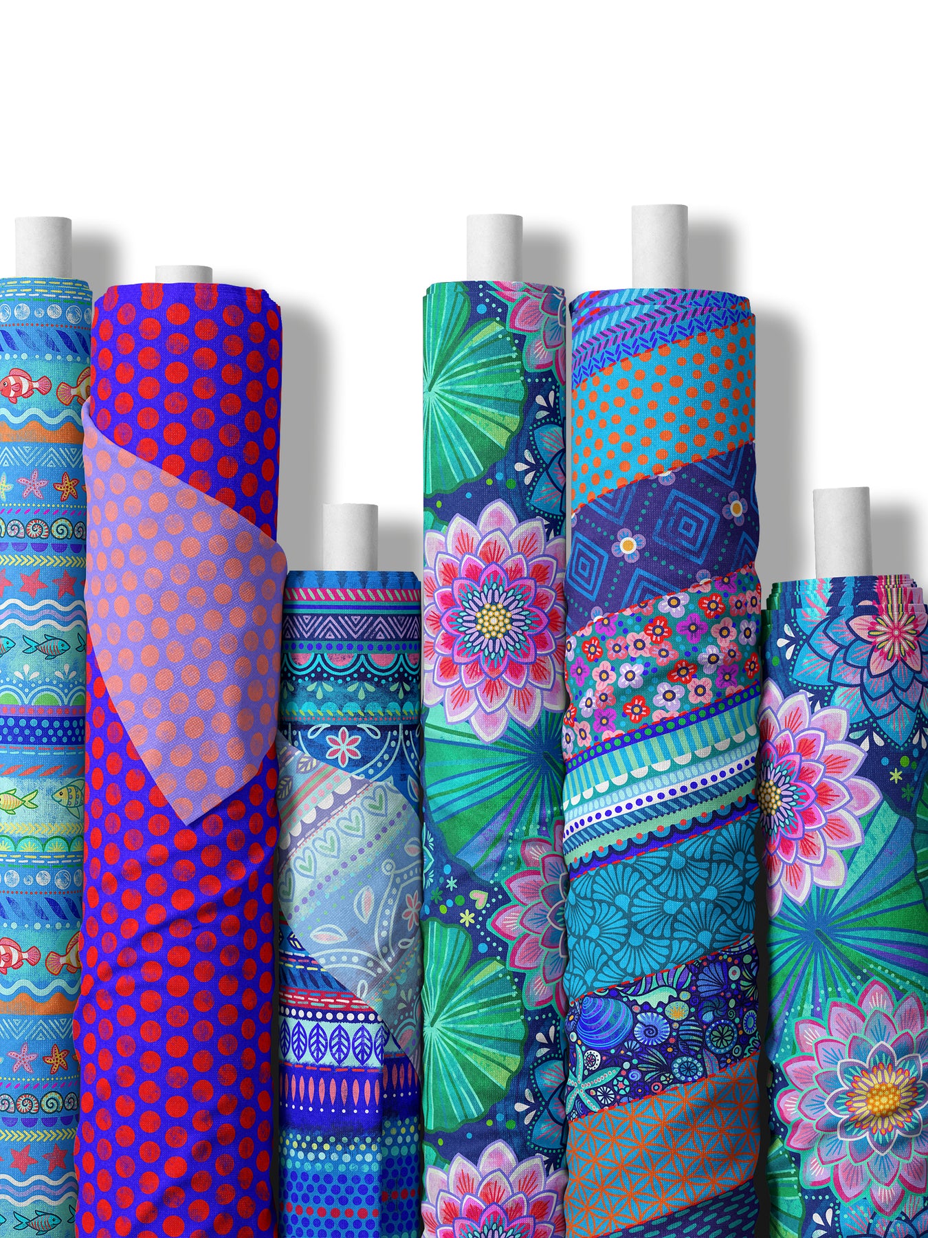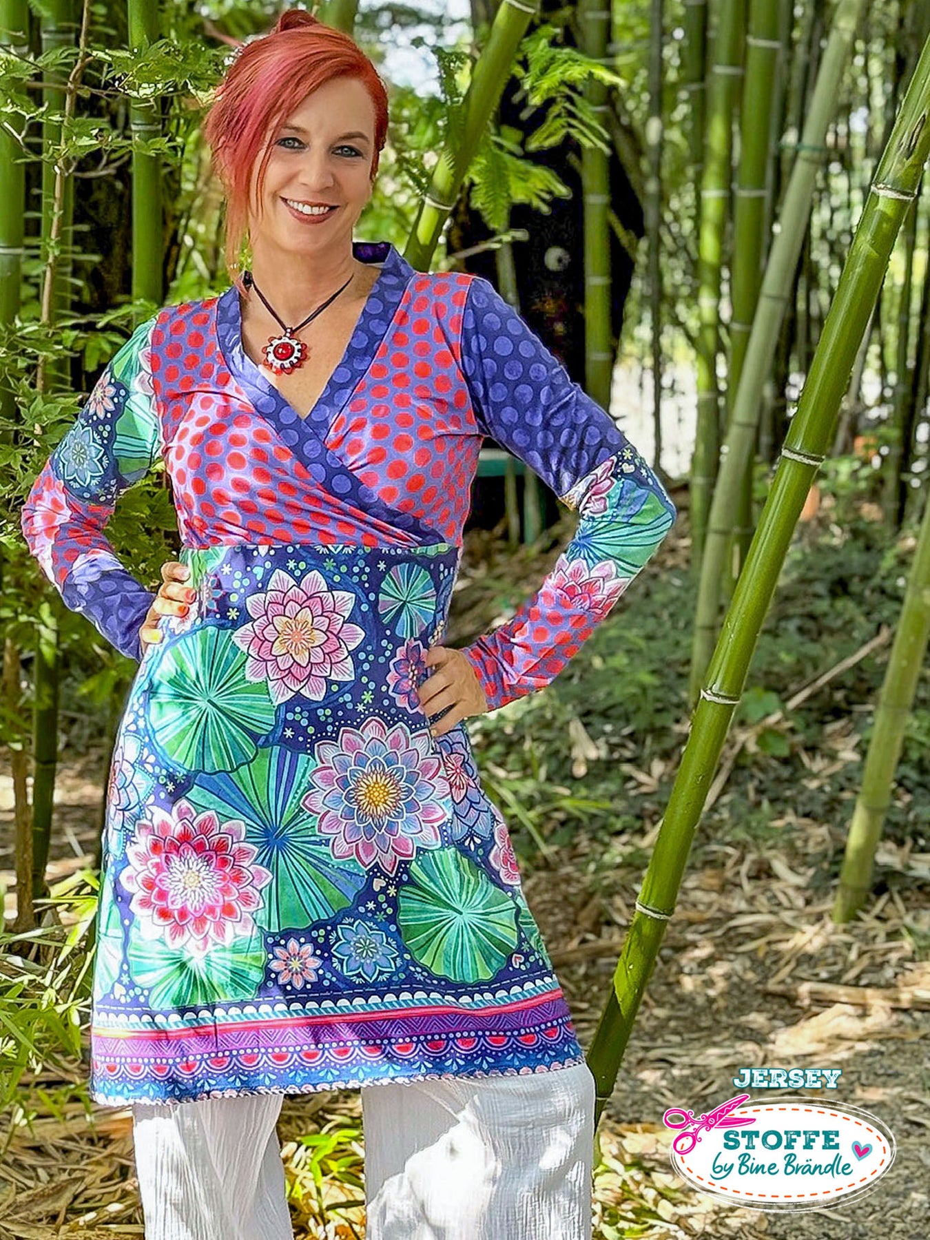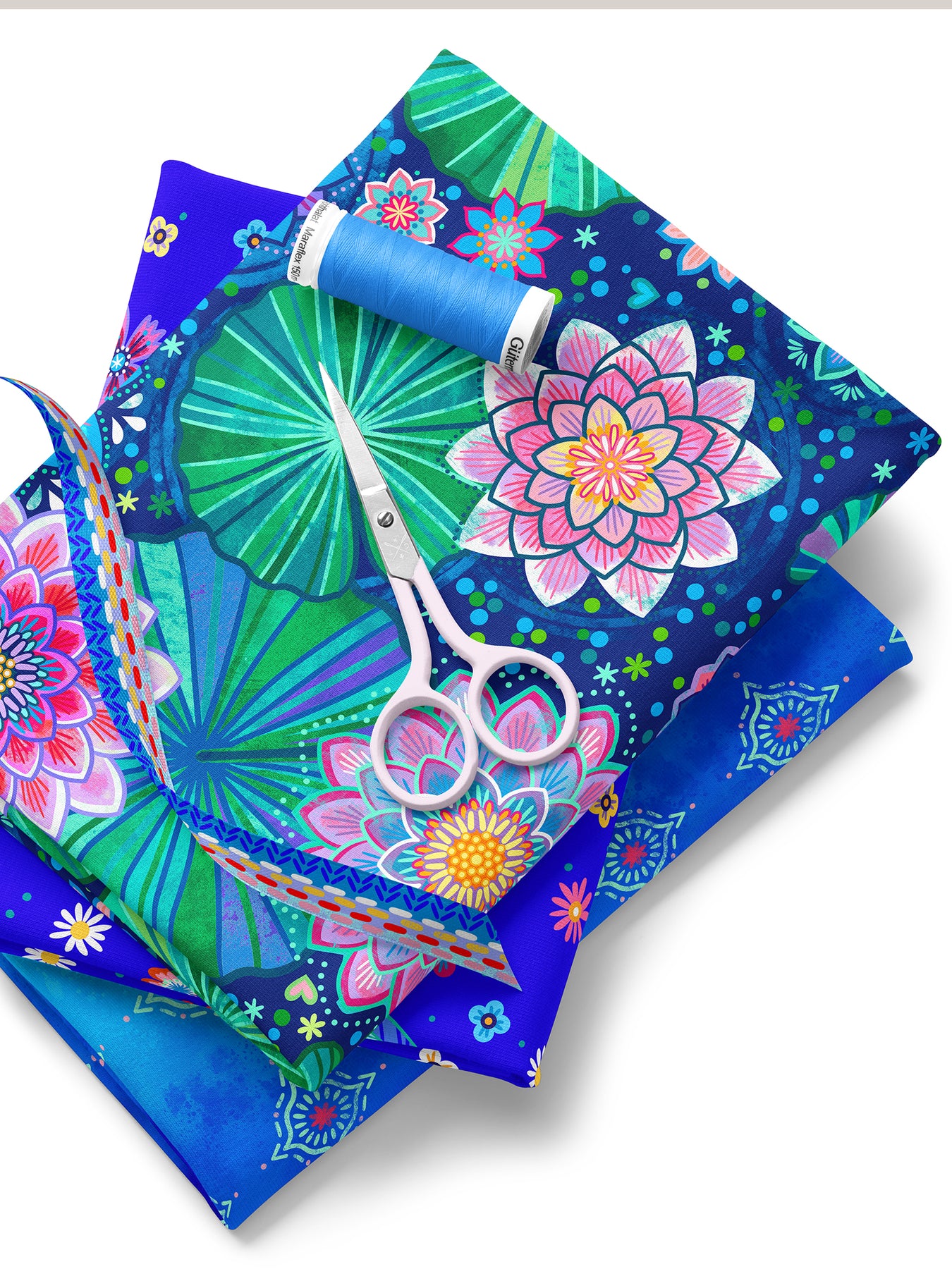 Farbenfroher Stoff mit dem Motiv "Seerosenstoff dunkelblau".
