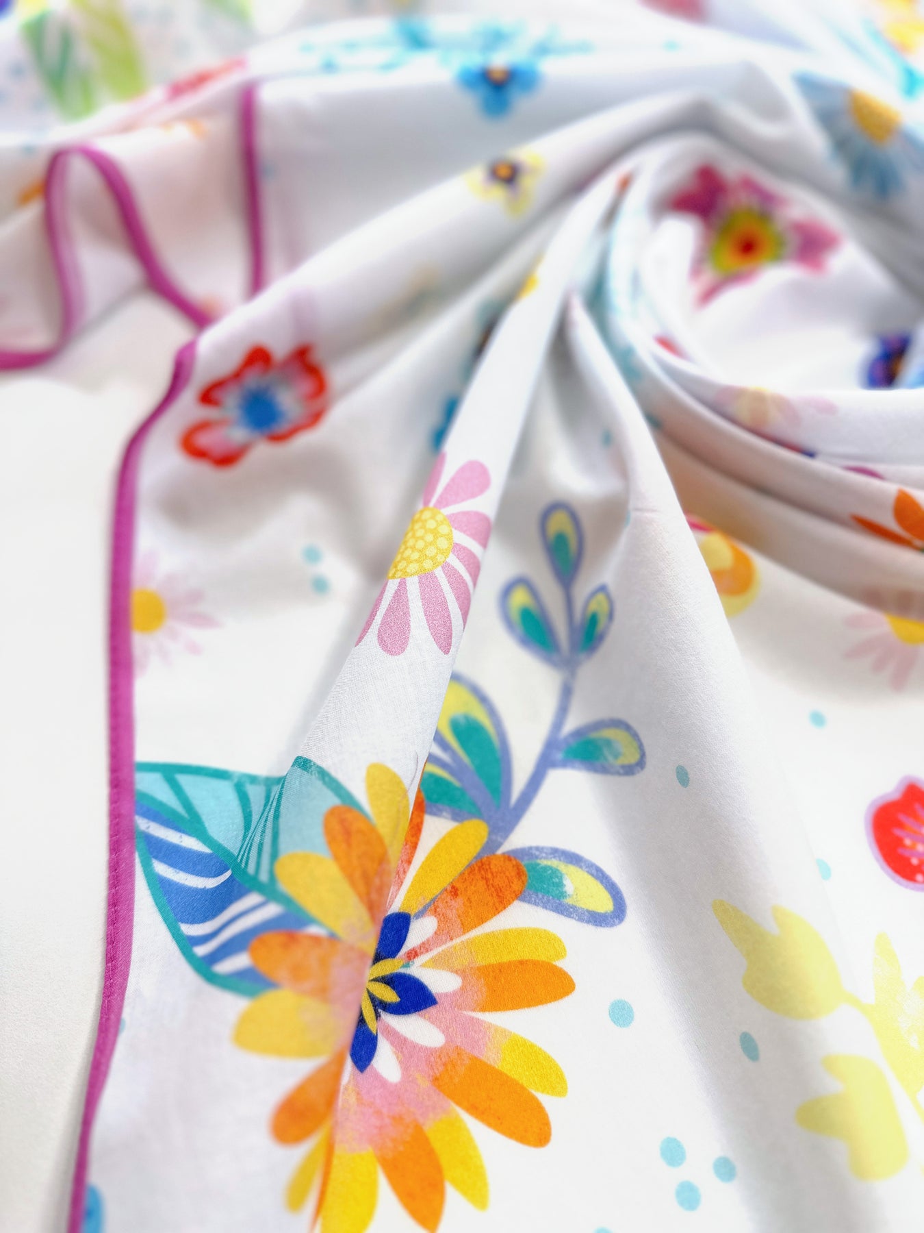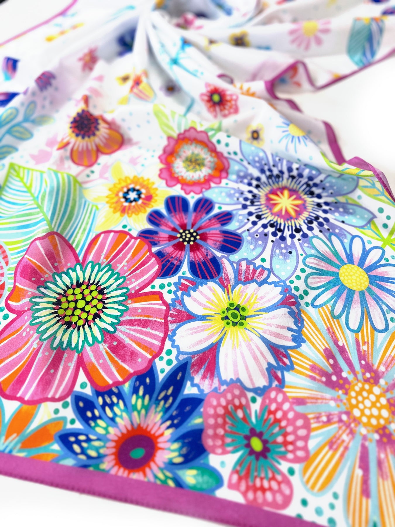 Der einseitige Druck sorgt dafür, dass die Rückseite etwas pastelliger wirkt – so entsteht ein wunderschöner, sanfter Farbverlauf, der das Tuch noch lebendiger macht.