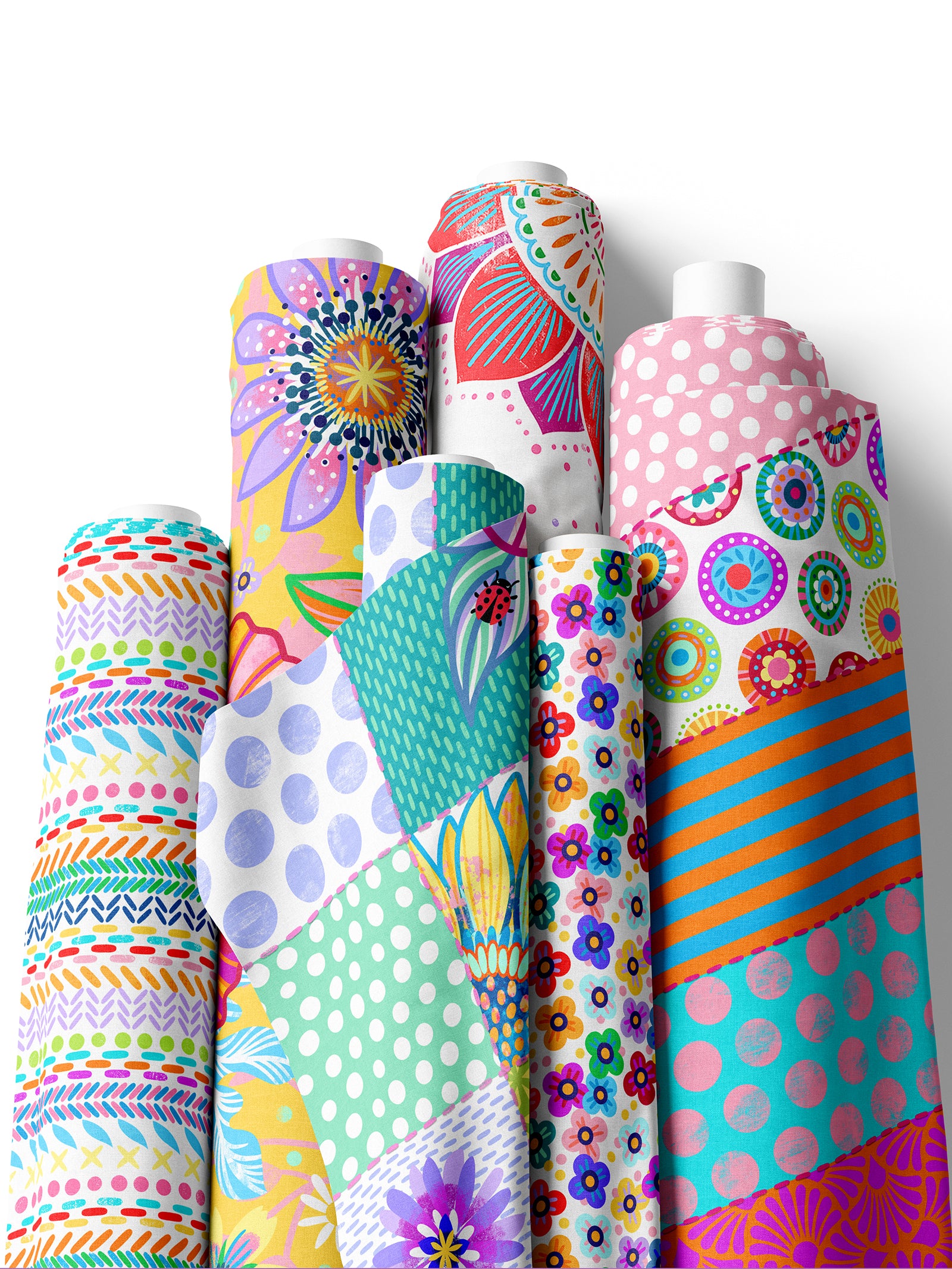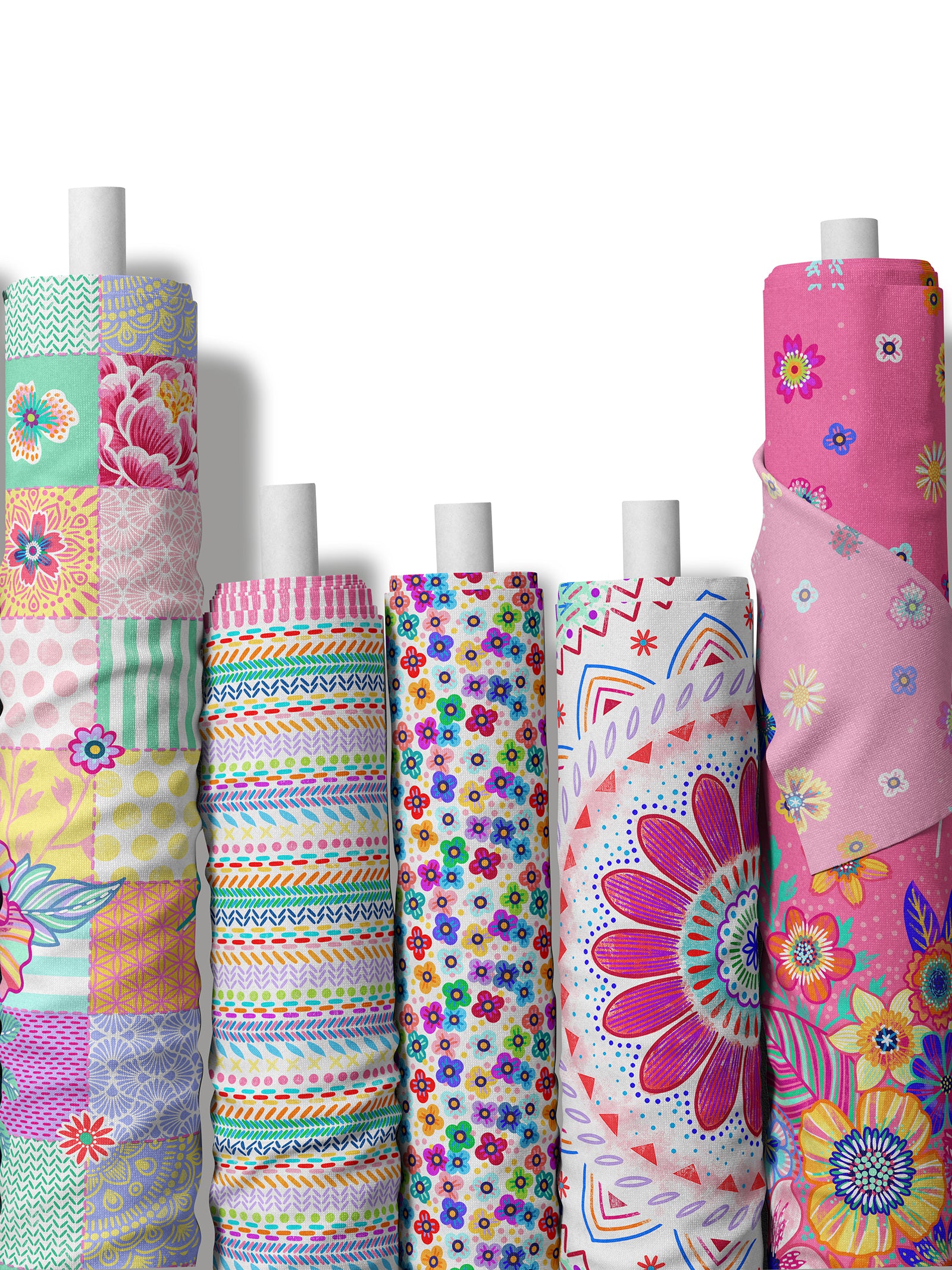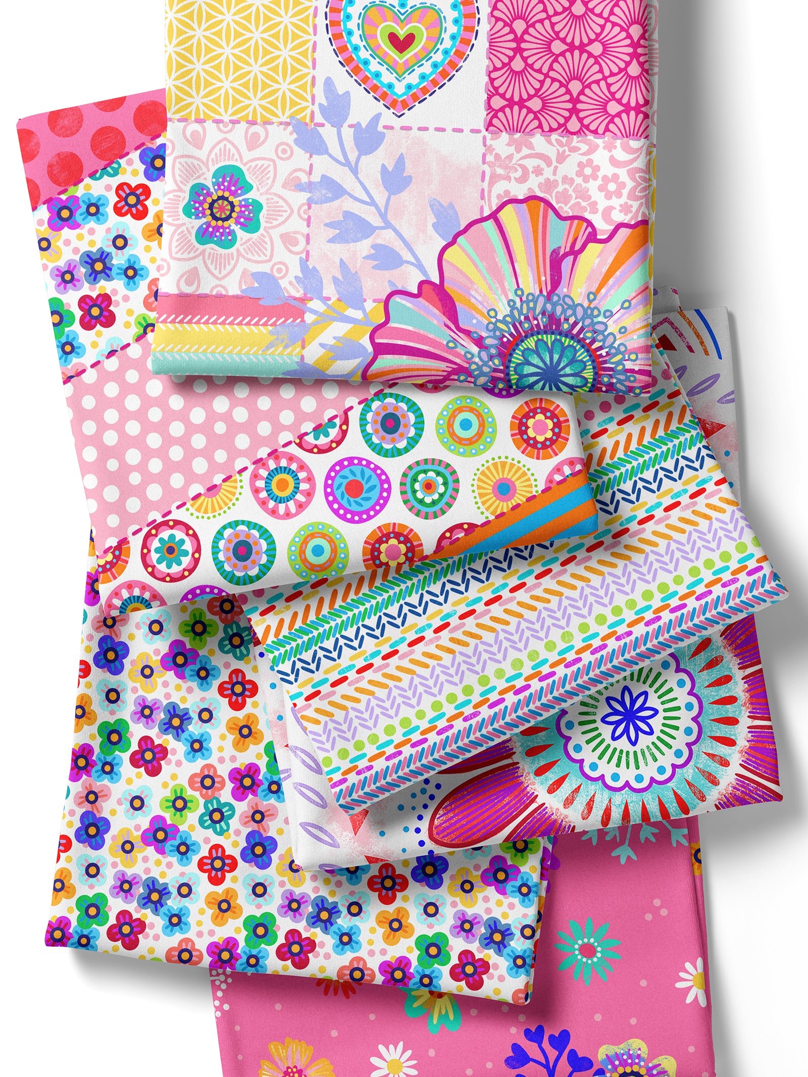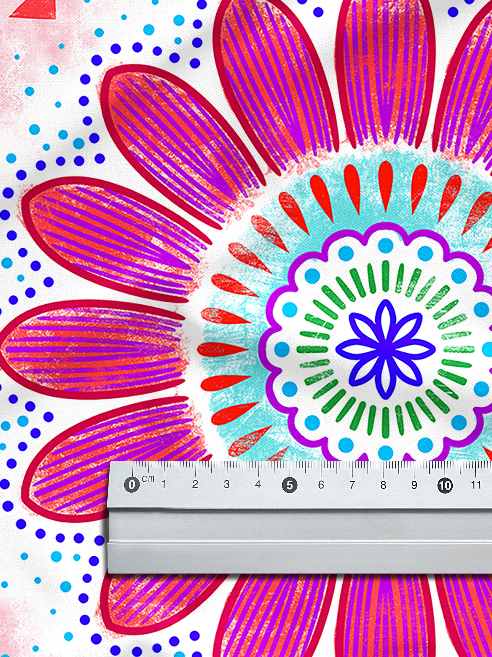 Farbenfroher Stoff mit dem Motiv "Mandala weiß-rot".