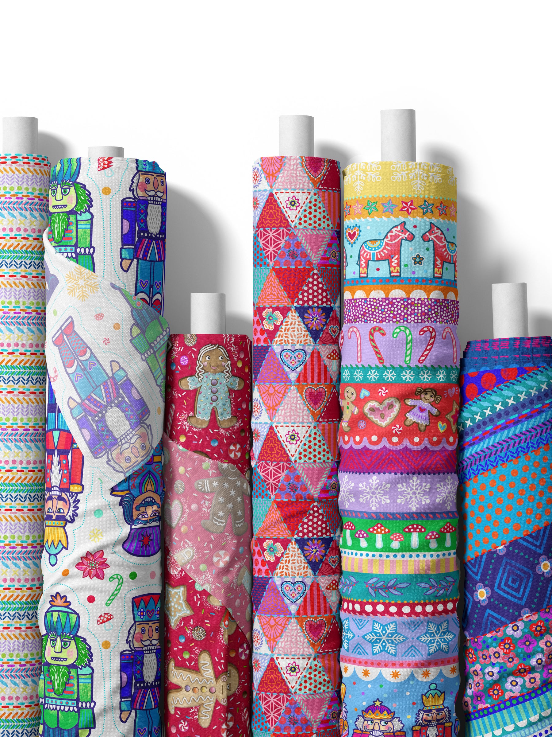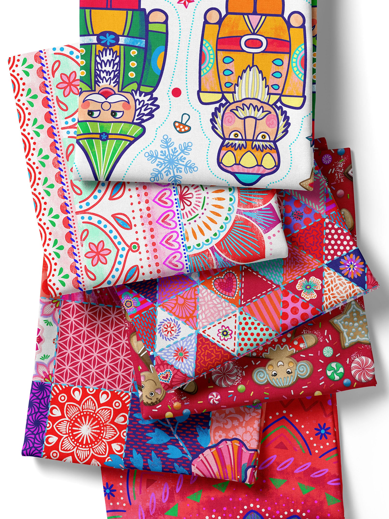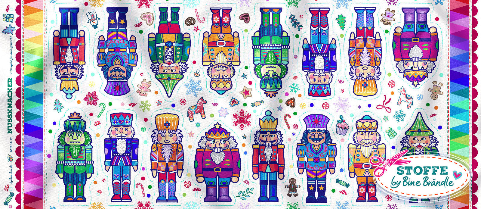 Farbenfroher Stoff mit dem Motiv "Nussknackerstoff groß".
